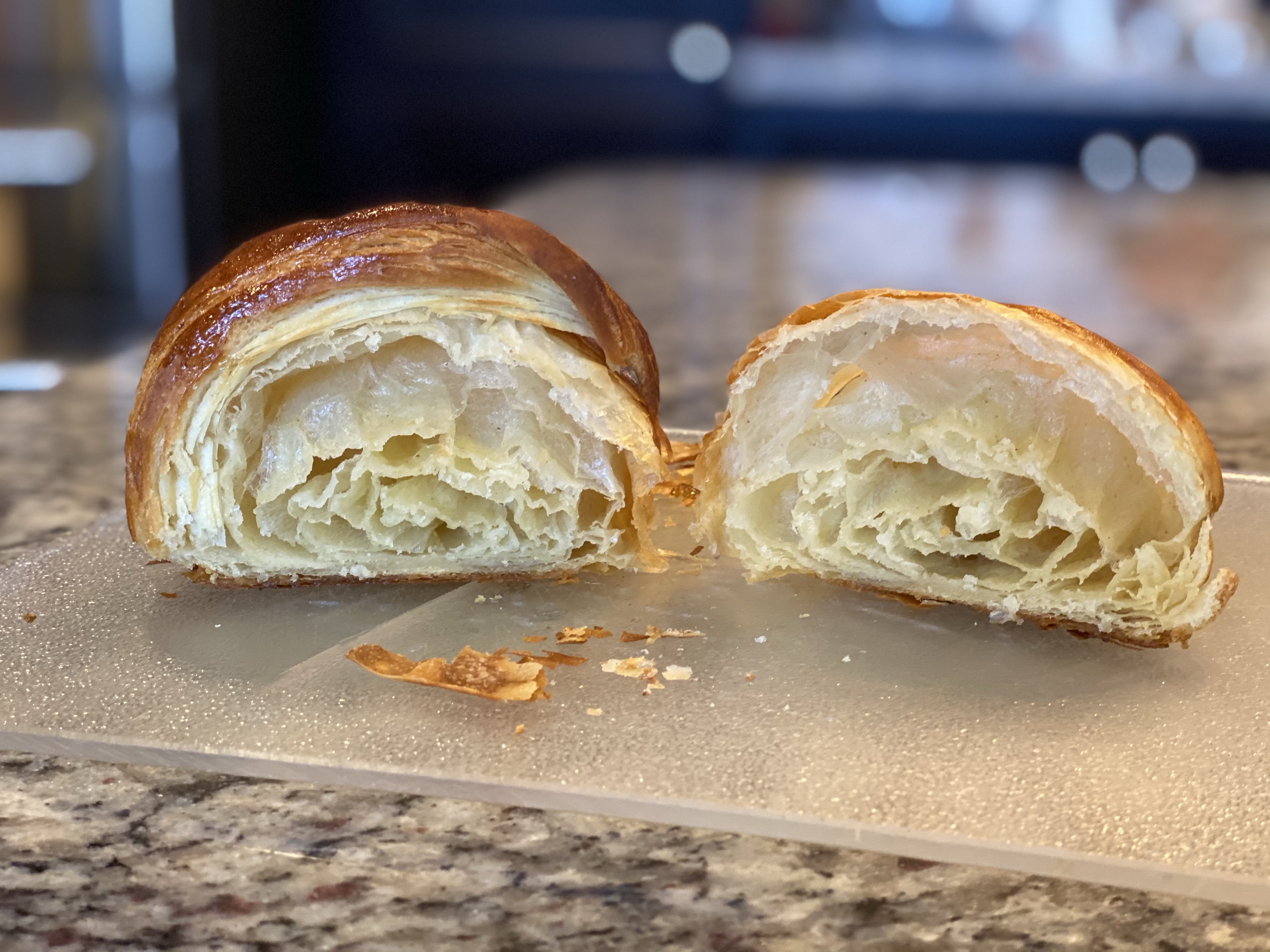 I notice from your picture the inner coil of the croix in slumped towards the bottom. I remember being told this was from slightly over proofing. Personally I prefer over as under gives a very tight texture!