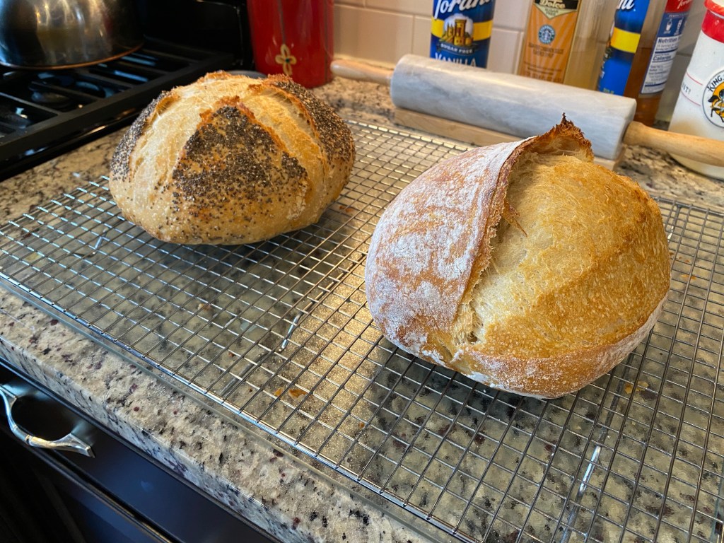 I’ve baked my normal loaves first. A chia-covered Boule and a regular Batard. They came out nicely.