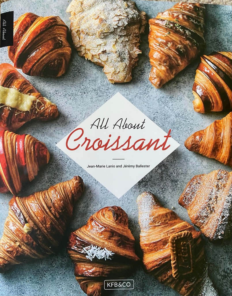 I got the idea, recipe (below) and method from my All About Croissant book. It’s the croissant featured at the very top of the cover. Mine looked similar.