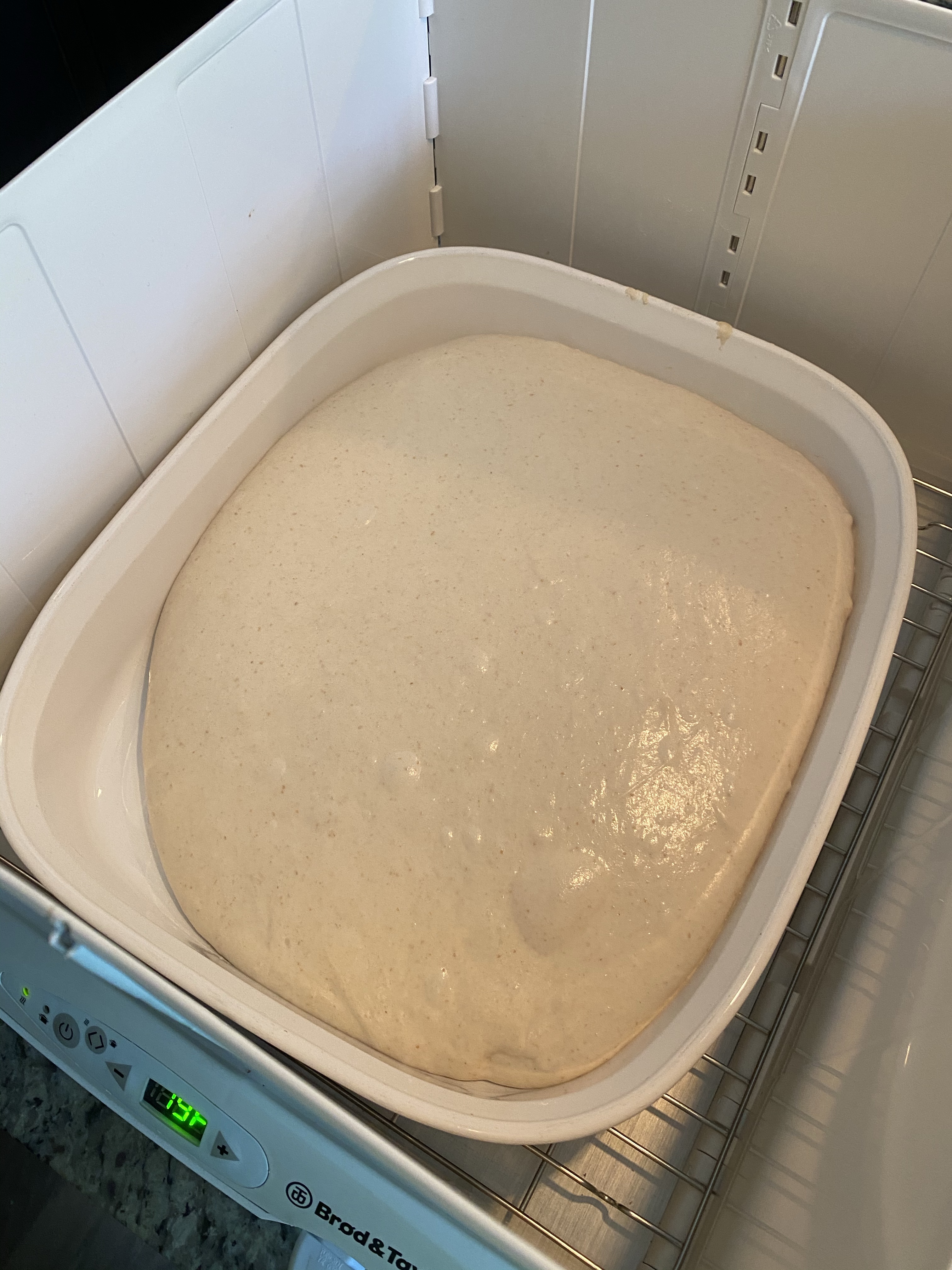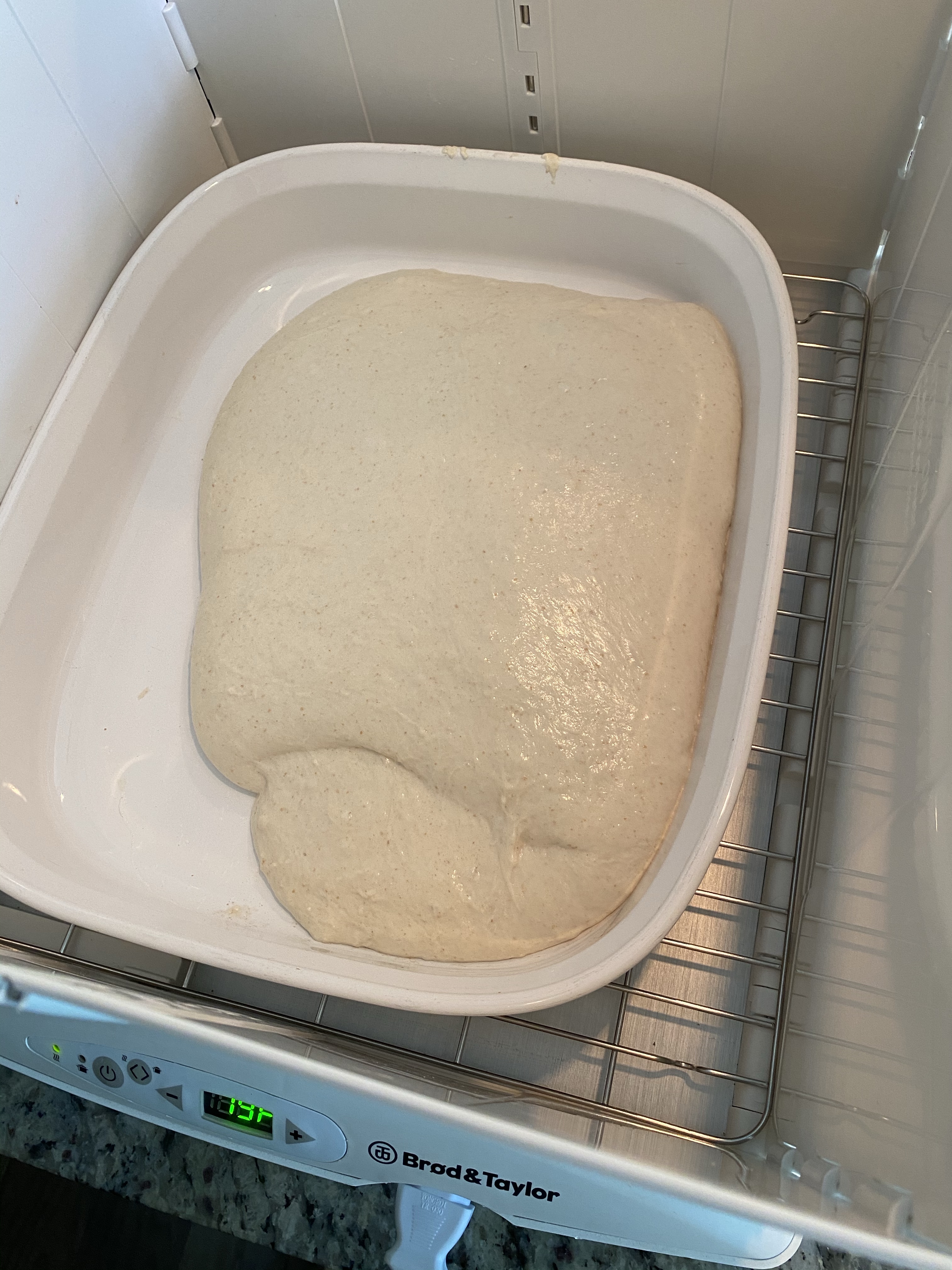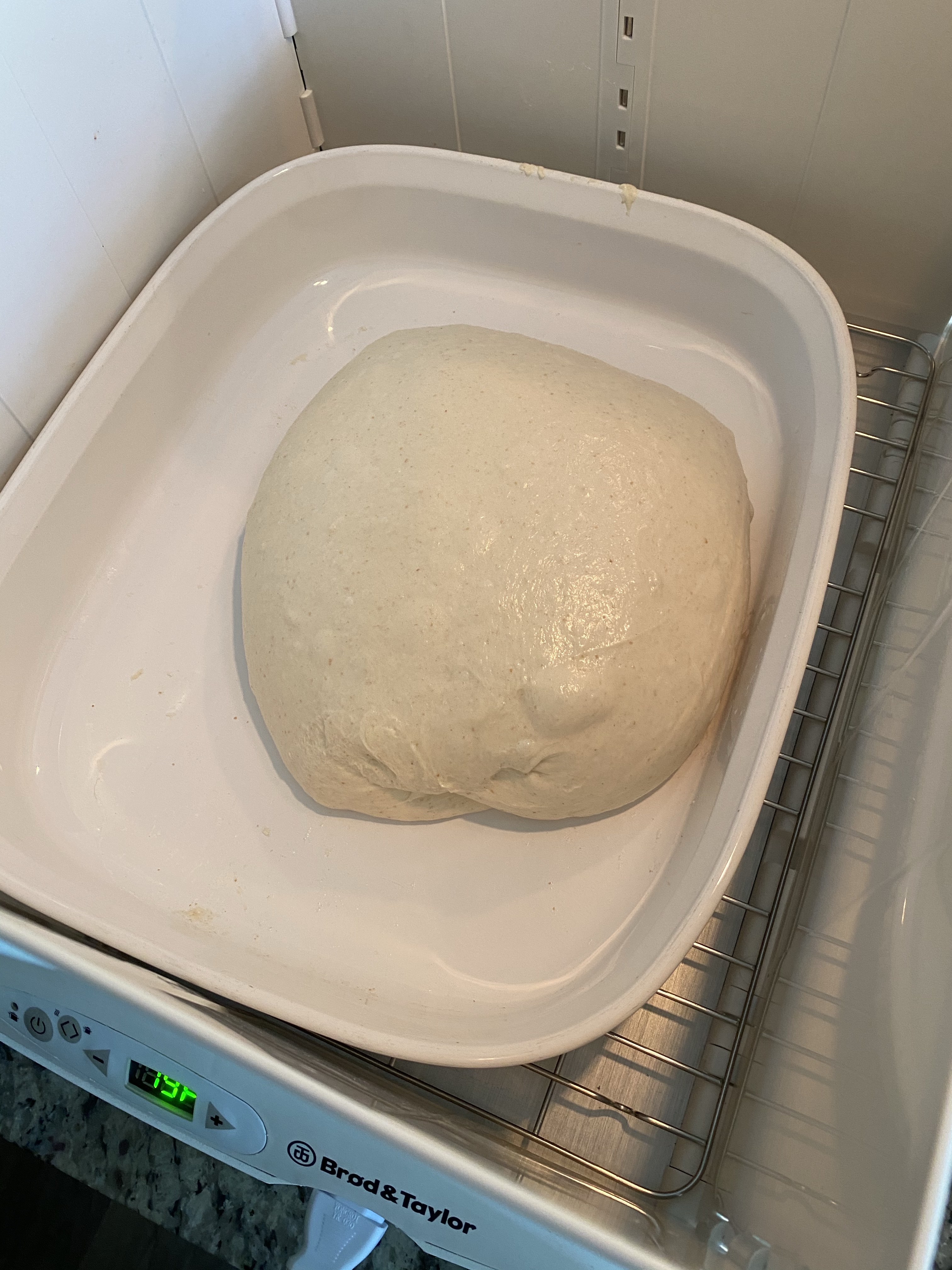 I’m alternating my approach (yet again). This time I’m going to bulk ferment in my proving box and doing coil folds.
