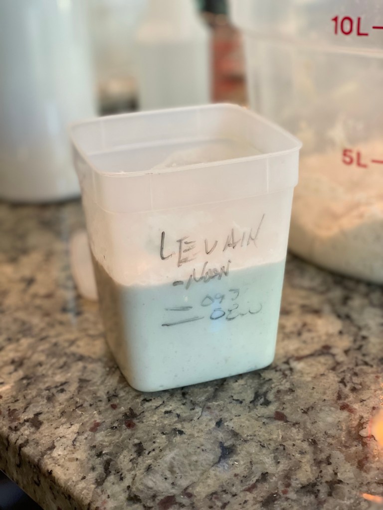 Next time I will use differs temps for both (e.g. 75°F for the Poolish and 80°F for the leaven). I’ll also mix my leaven at a 1:1:1 ratio not the 1:10:10 ratio…need a higher percentage of active starter to grow faster.