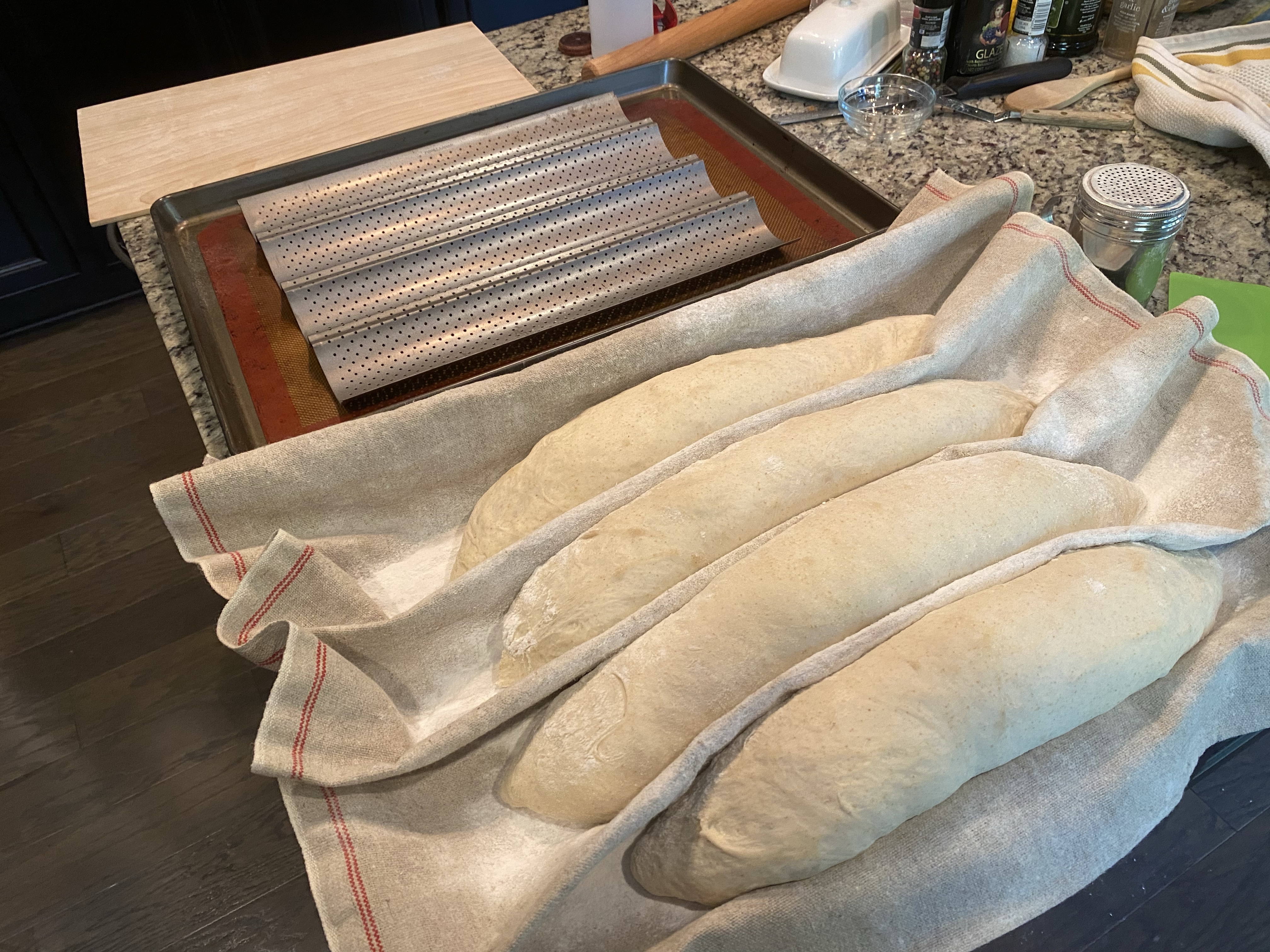 I shaped the loaves and got them covered in the Couche. The method says to let prove for 2-3.5 hours. Not sure I’ll let them go that long. I’ll poke them and bake maybe 90 or so minutes from now.