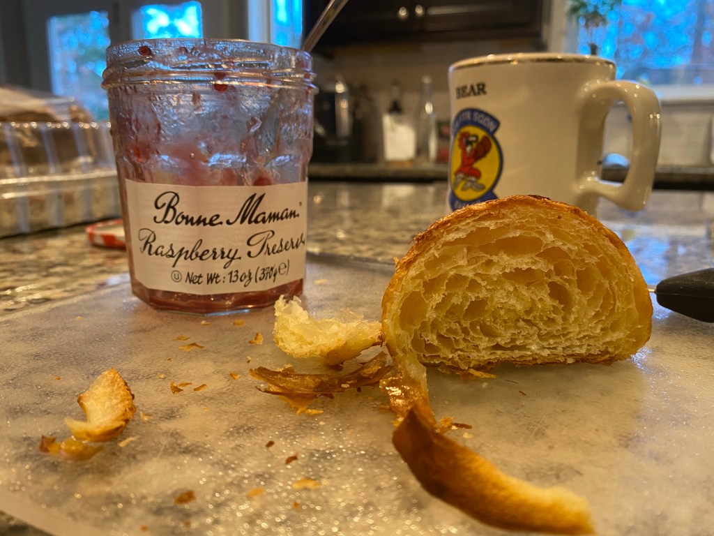 This is a time to enjoy the simple pleasure of eating a well-made sourdough croissant I baked.