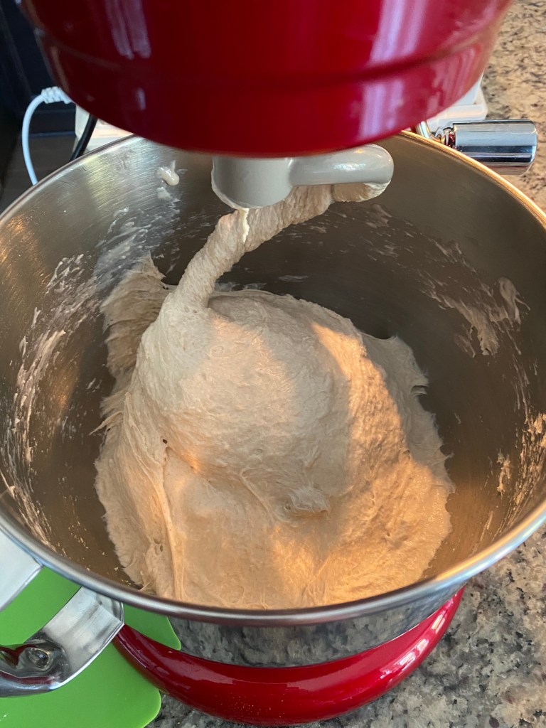 Technically, if you include the starter amounts my total flour is 1330g and water is 915g so my hydration is 69% salt is 1.8%.