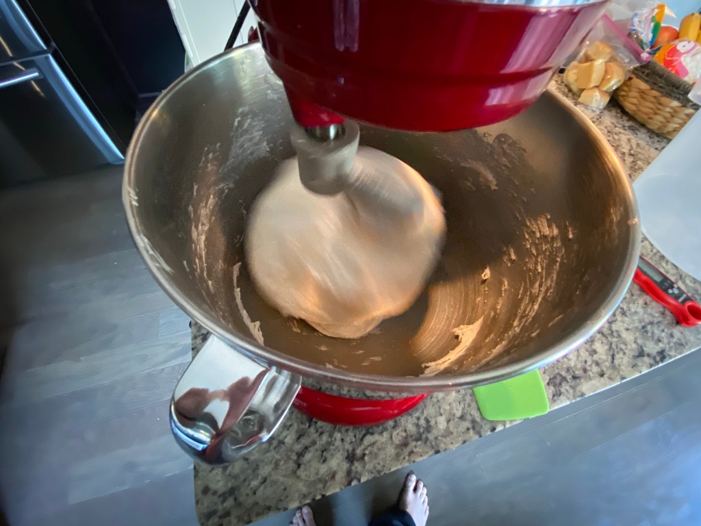 I’ll mix in my starter then mix in my salt about 25 mins later. Then the dough is going to go into my tub / proving box to begin a series of coil and stretch folds every 30 mins over the first 90 mins.